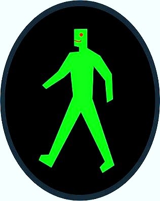 im grünsten der Hemden die Straße hinunter.Die Kreuzung. Es kommen mir Autos entgegen.